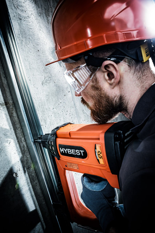 «Для монтажа металлических каркасов и направляющих для ГКЛ мы рекомендуем брать газовый монтажный пистолет HYBEST GSR40a в полной комплектации, т.к. такая комплектация имеет короткий ствол S, который лучше всего подходит для монтажа тонких металлических элементов. С коротким стволом пистолет забивает глубже гвозди в несущее основание и за счет этого конструкция будет более жесткой и неподвижной.»