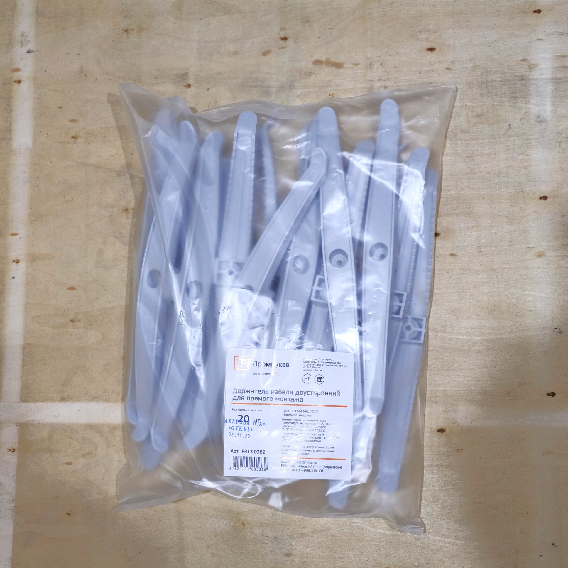 - Держатель кабеля двусторонний для прямого монтажа серый (20шт/уп) Промрукав