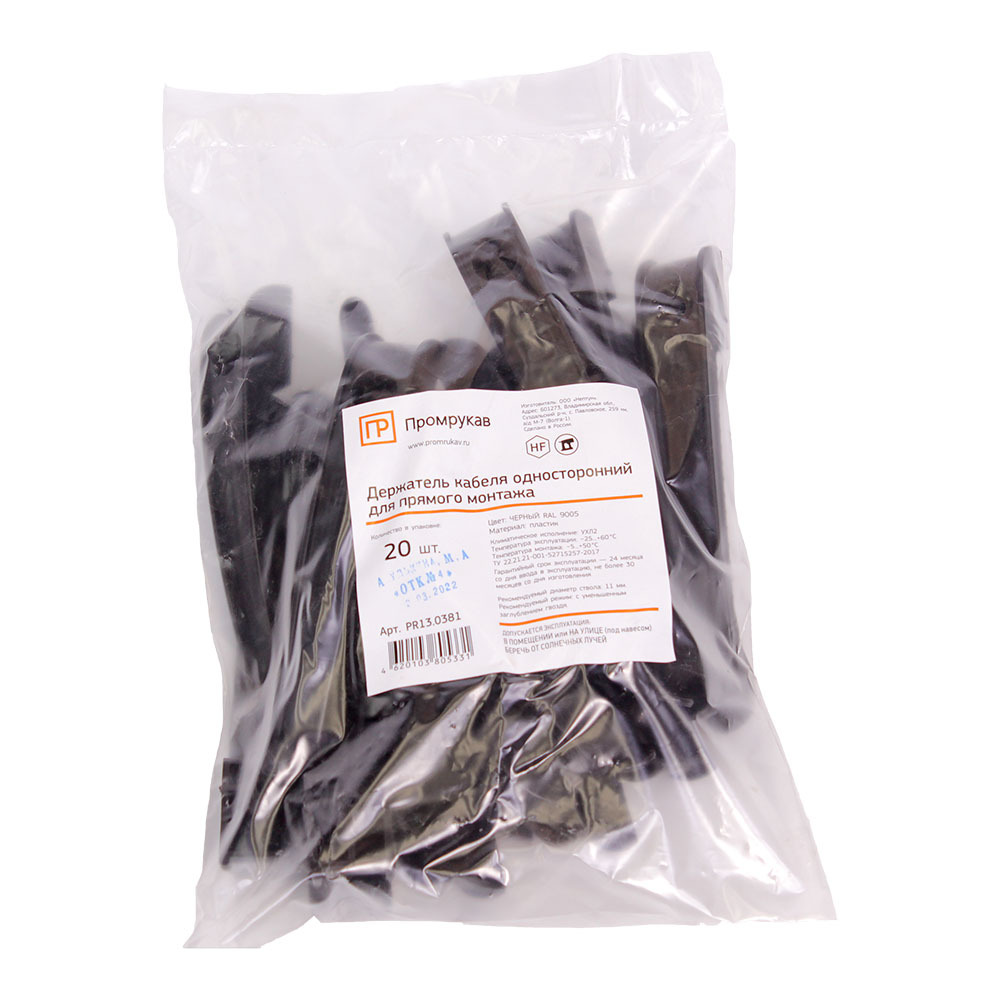 - Держатель кабеля односторонний для прямого монтажа черный (20шт/уп) Промрукав
