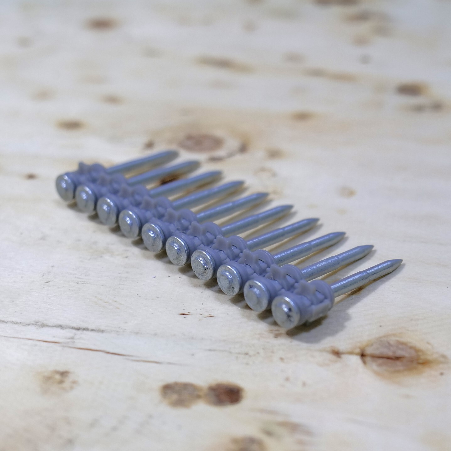 - Особенностью данных гвоздей является кованый наконечник и пулевидная форма. Такая конструкция обеспечивает оптимальное проникновение даже в плотный бетон, минимизируя риск сколов и повреждений.
