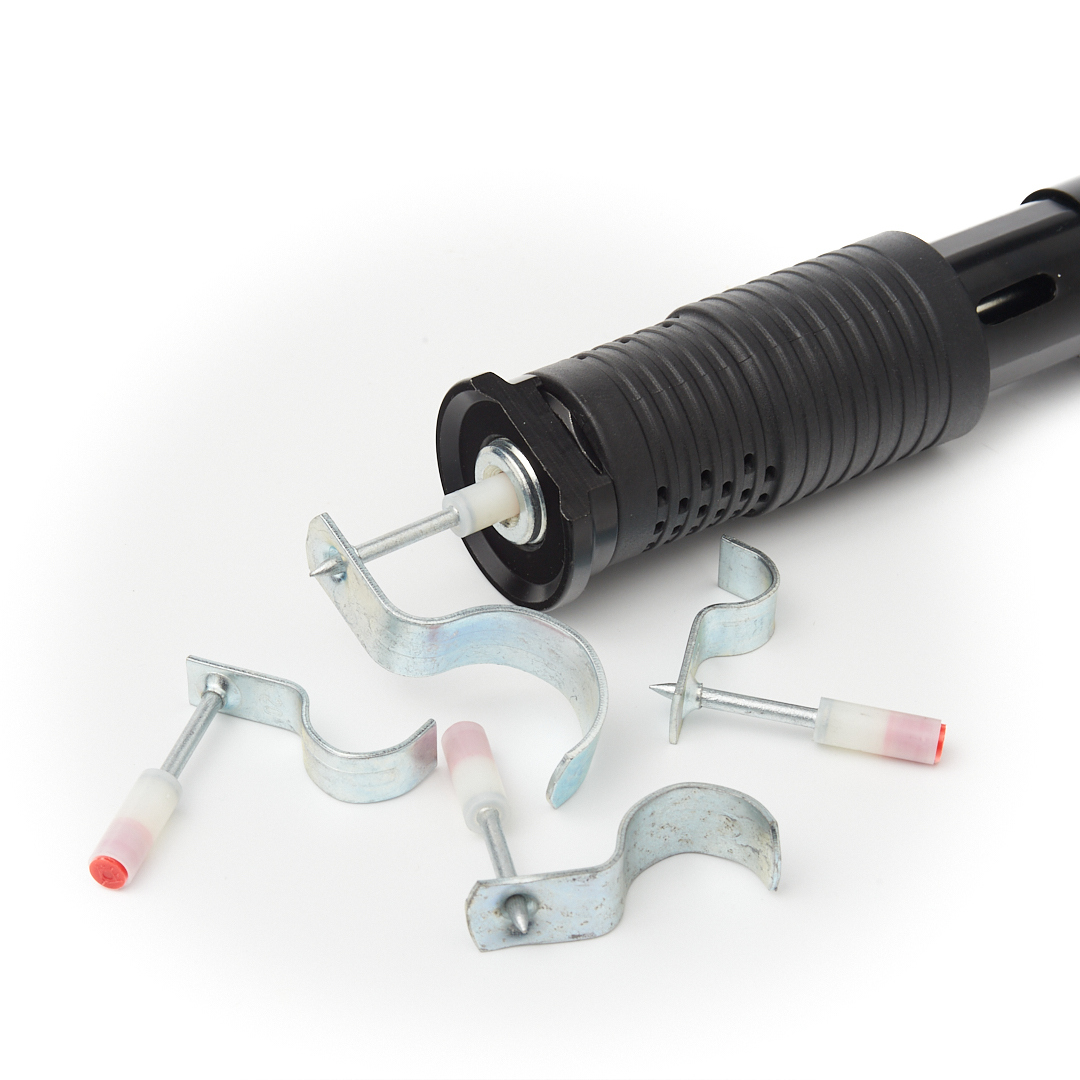 Гвоздь монтажный пироксилиновый — это высокопрочный цельнометаллический дюбель-гвоздь с однолапковой скобой и пироксилиновым (нитроглицериновым) зарядом, специально разработанный для быстрой и безопасной фиксации труб. Отличительной особенностью данного крепежа является его работа без использования патронов, что облегчает монтаж в труднодоступных местах.
