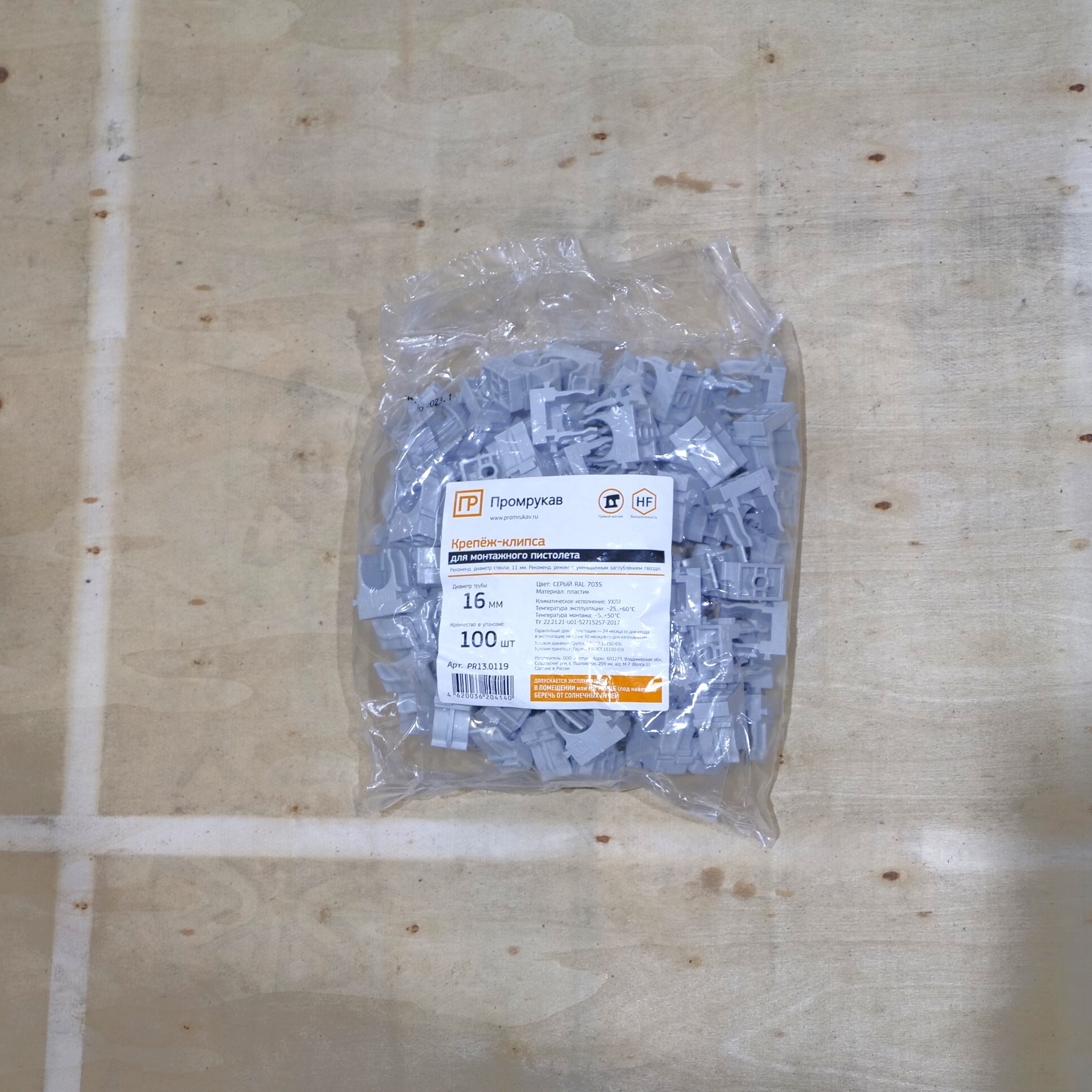 - 100 клипс от Промрукав для труб диаметром 16 мм