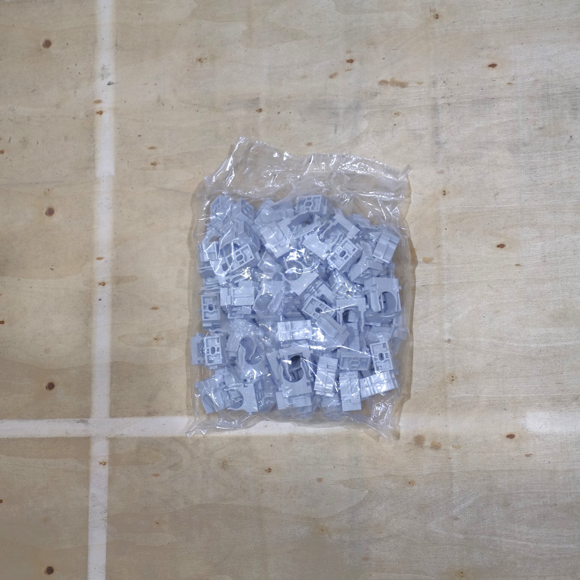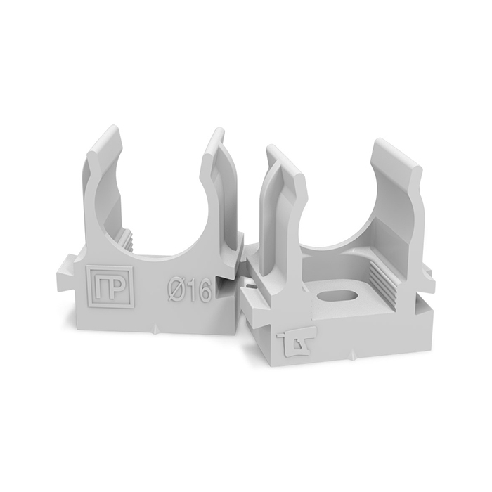 - Крепеж-клипса для труб для монтажного пистолета серая в п/э д16 (100шт/уп) Промрукав