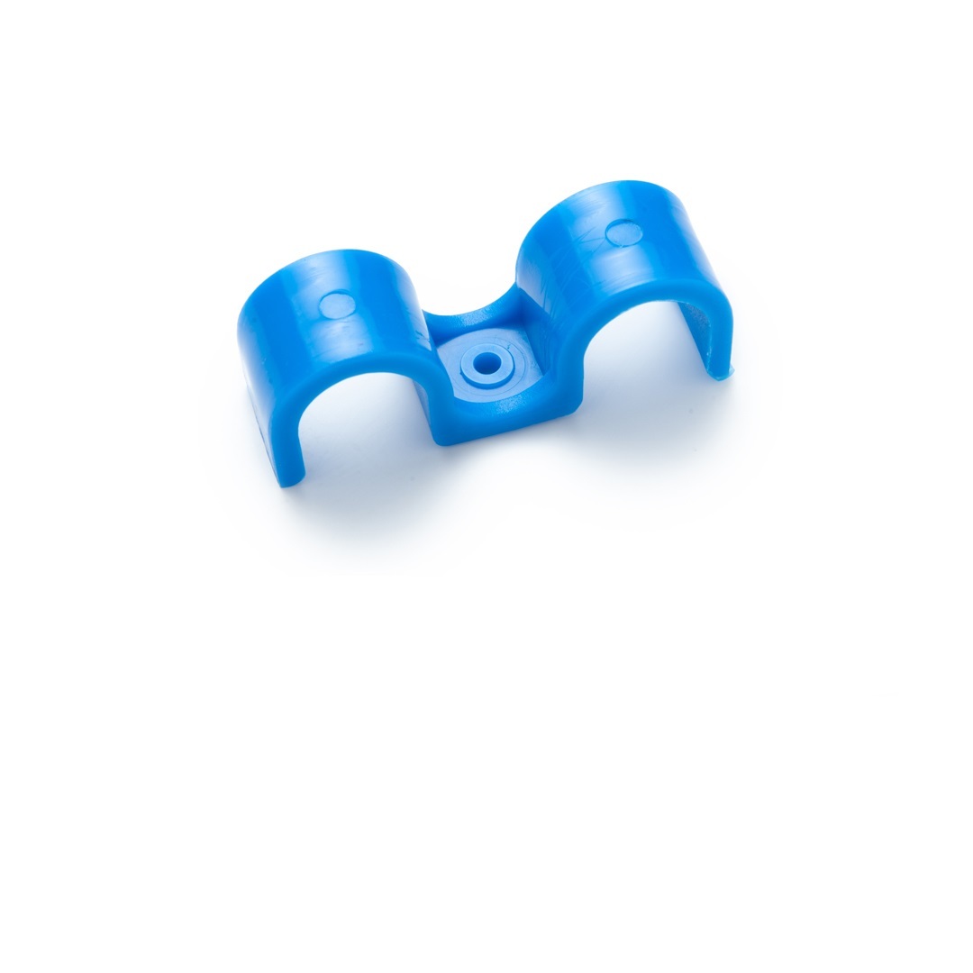 - Крепеж-скоба для сантехнических труб для монтажных пистолетов (16 мм, синий, двухстороняя, 60 шт/уп)
