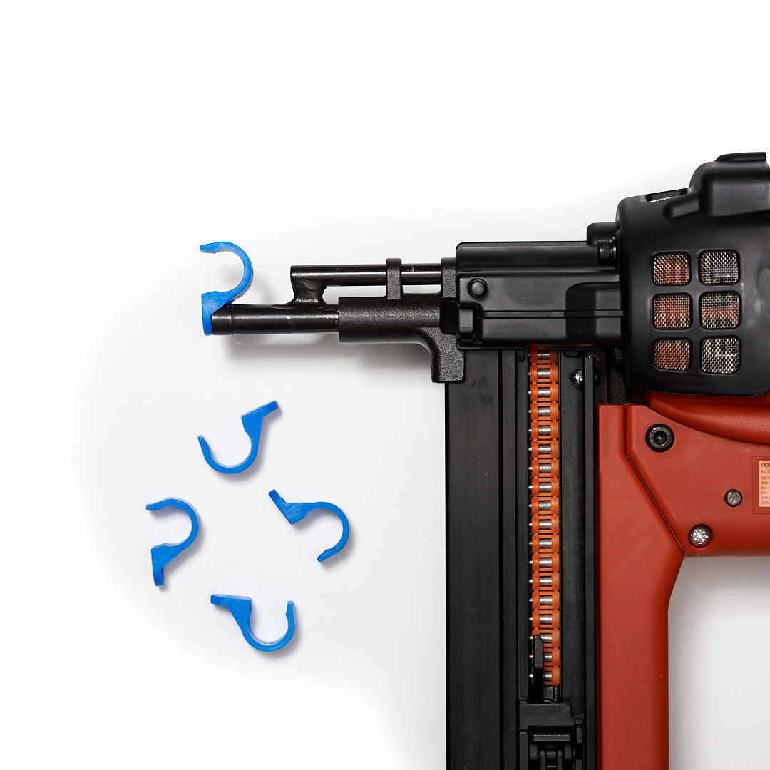 Крепеж-скоба односторонняя 16 мм — предназначены для монтажа проводки в гофрированных трубах, монтажа водонапорных труб, нагревательных труб системы "теплый пол" и прочих работ по прокладке сетей на горизонтальных и вертикальных поверхностях. Их применение позволяет существенно сократить время монтажа за счет возможности пристрелки монтажным пистолетом к бетону, кирпичу и даже металлу.