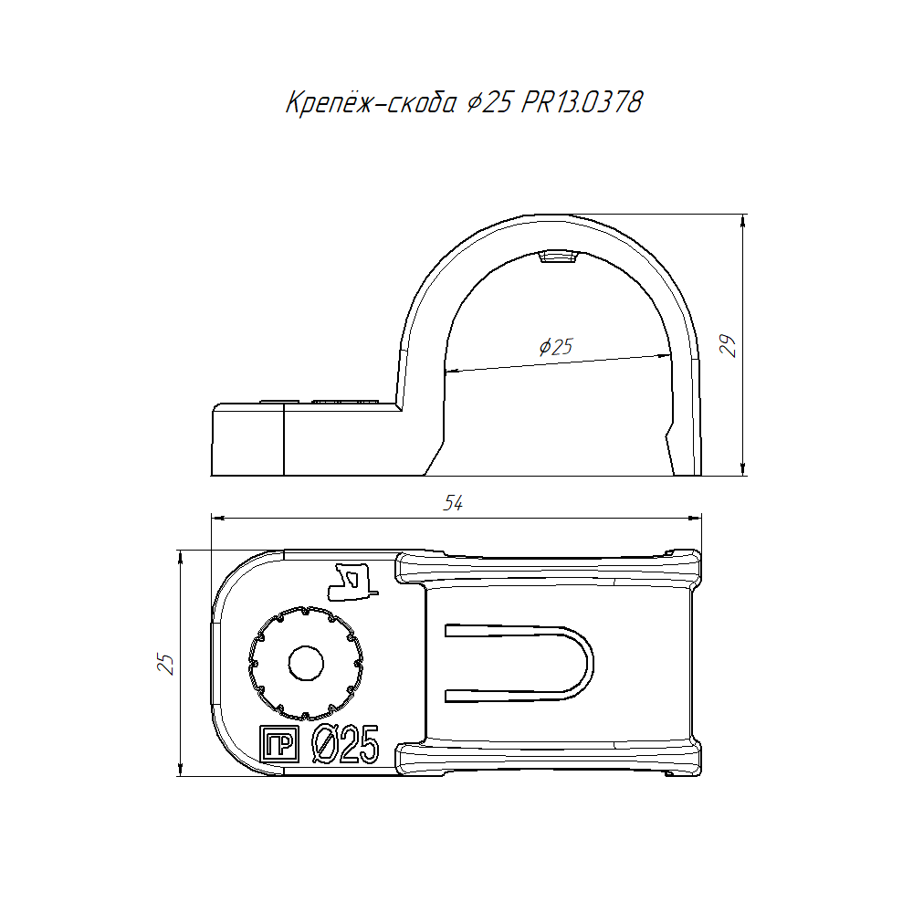 - Крепеж-скоба пластиковая односторонняя для прямого монтажа белая в п/э д25 (50шт/уп) Промрукав