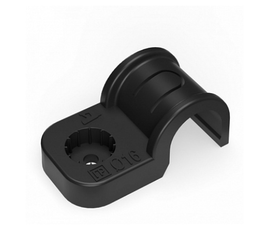- Крепеж-скоба пластиковая односторонняя для прямого монтажа черная в п/э д16 (50шт/уп) Промрукав