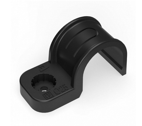- Крепеж-скоба пластиковая односторонняя для прямого монтажа черная в п/э д25 (50шт/уп) Промрукав
