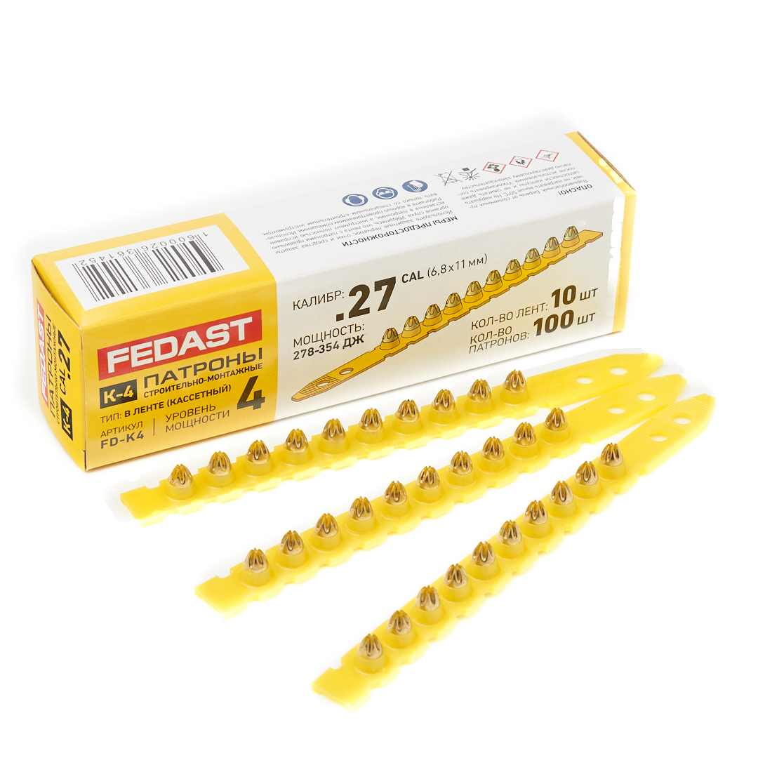 - Монтажный патрон в кассете К-4 для порох. монтаж пистолетов (кал. 6,8х11 мм, желтый, 100 шт/уп) FEDAST