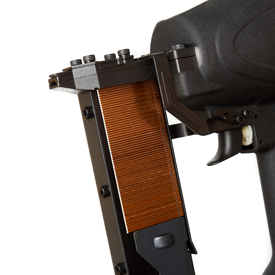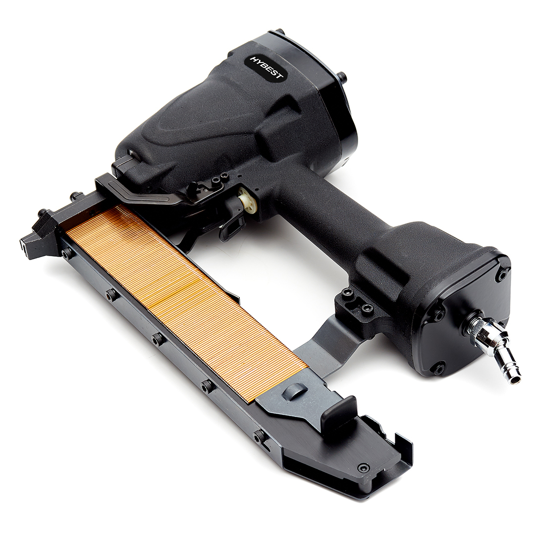 Пневматический скобозабивной пистолет Hybest N851 — это профессиональный инструмент для столярных и плотницких работ, обивки мебели и других задач.