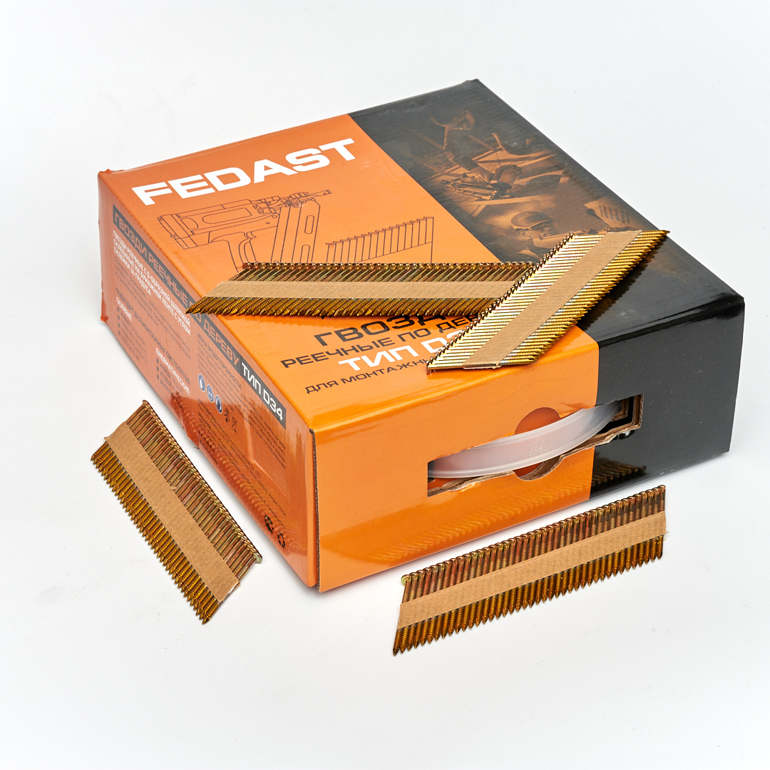 - Реечные гвозди по дереву тип D34 (2,87х63, RIEG гальв. кольц. накат., 3000 шт/уп) FEDAST