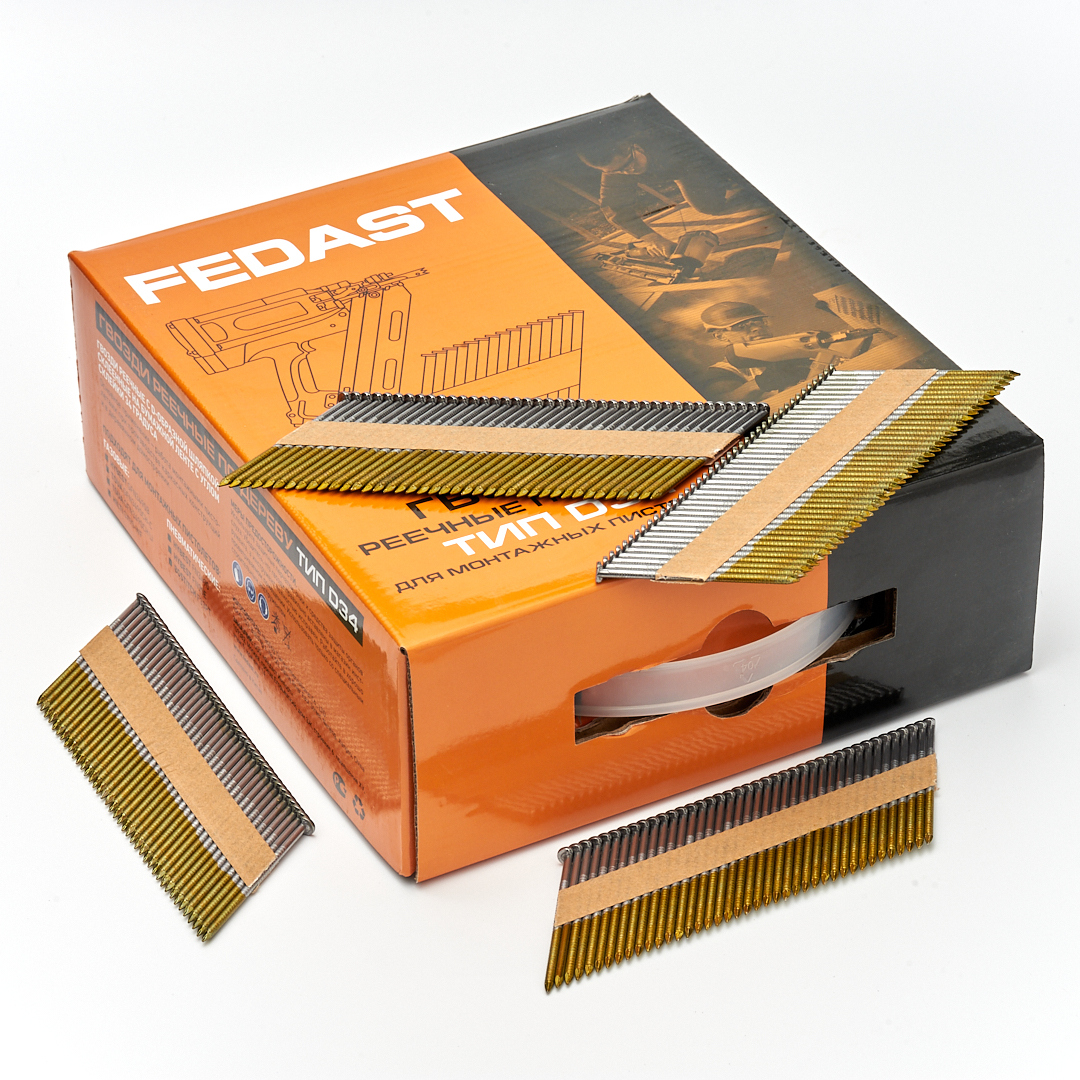 - Реечные гвозди по дереву тип D34 (2,8х50, RIBrt кольц.накат., 3000 шт/уп) FEDAST