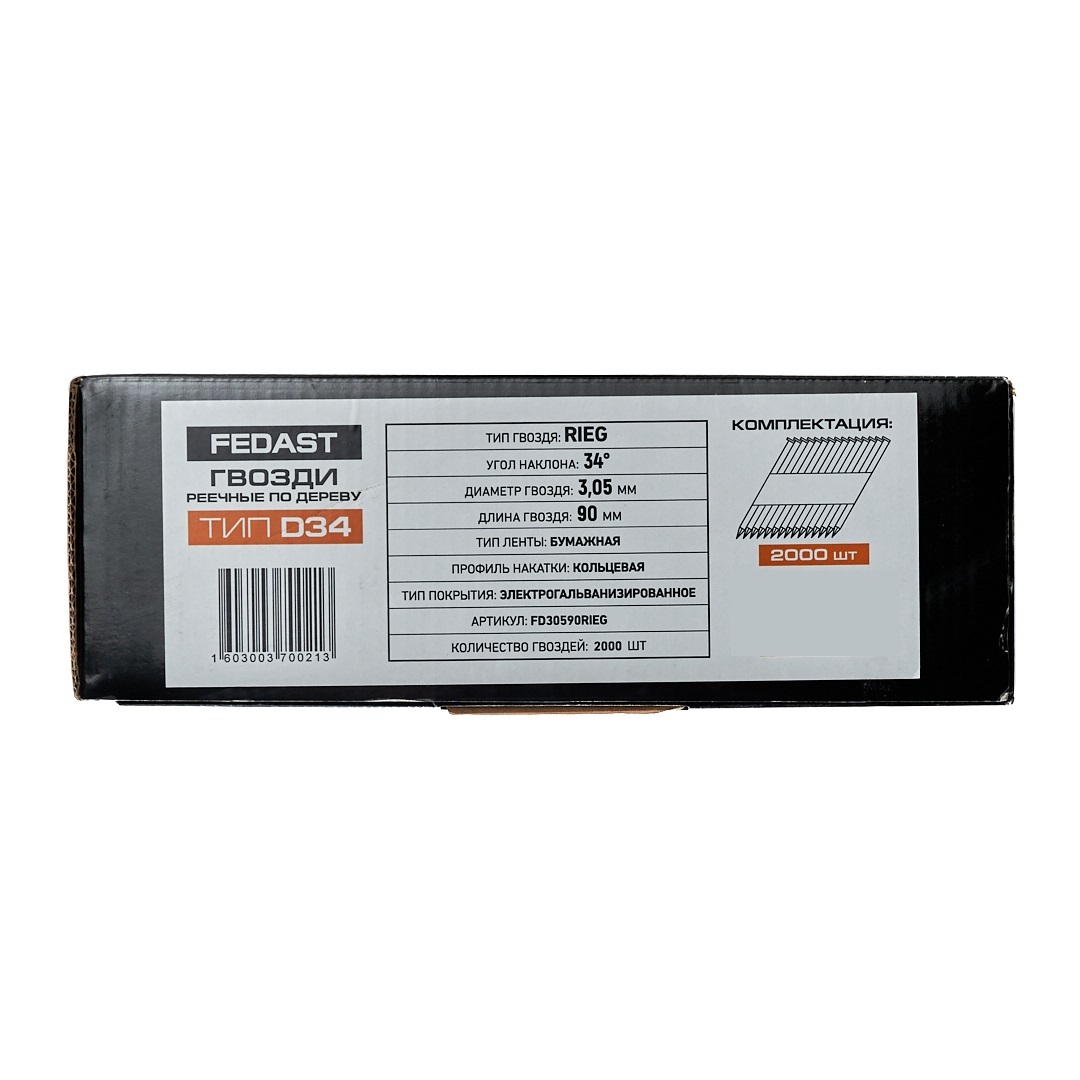 - Реечные гвозди по дереву тип D34 (3,05х90, RIEG гальв. кольц. накат., 2000 шт/уп) FEDAST