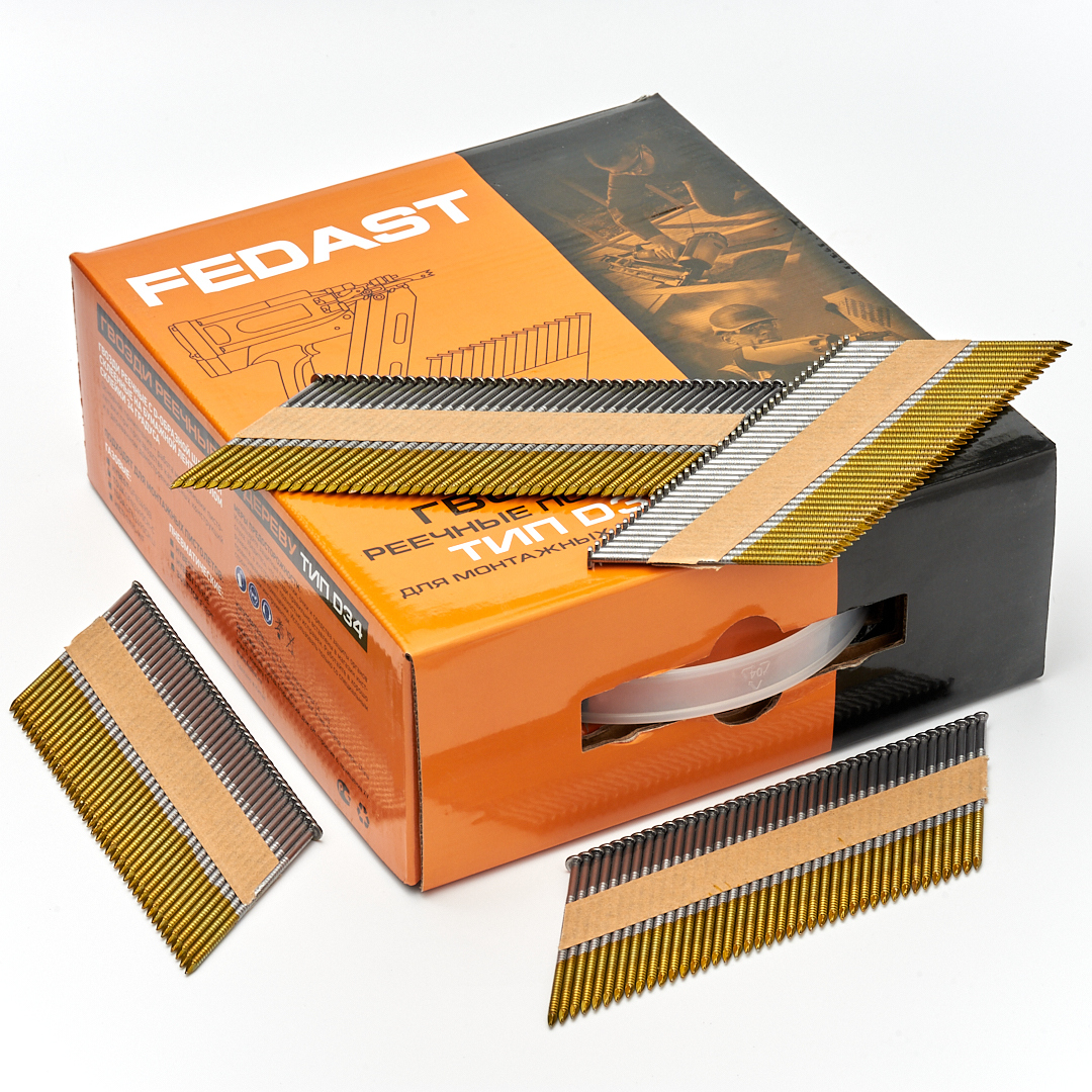 - Реечные гвозди по дереву тип D34 (3х90 RIBrt кольц.накат. 2000 шт/уп) FEDAST