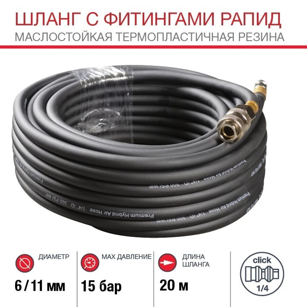 Шланг с фитингами рапид из маслостойкой полиуретановой резины (15 бар, 6x11 мм, 20 метров) — это высококачественный пневматический шланг, предназначенный для подключения пневмоинструментов к устройствам для сжатия газа. С его помощью вы сможете эффективно работать на нужном расстоянии, обеспечивая стабильную подачу сжатого воздуха.